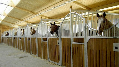 - 20 Boxen mit je 12 m² (davon 10 mit Paddock)